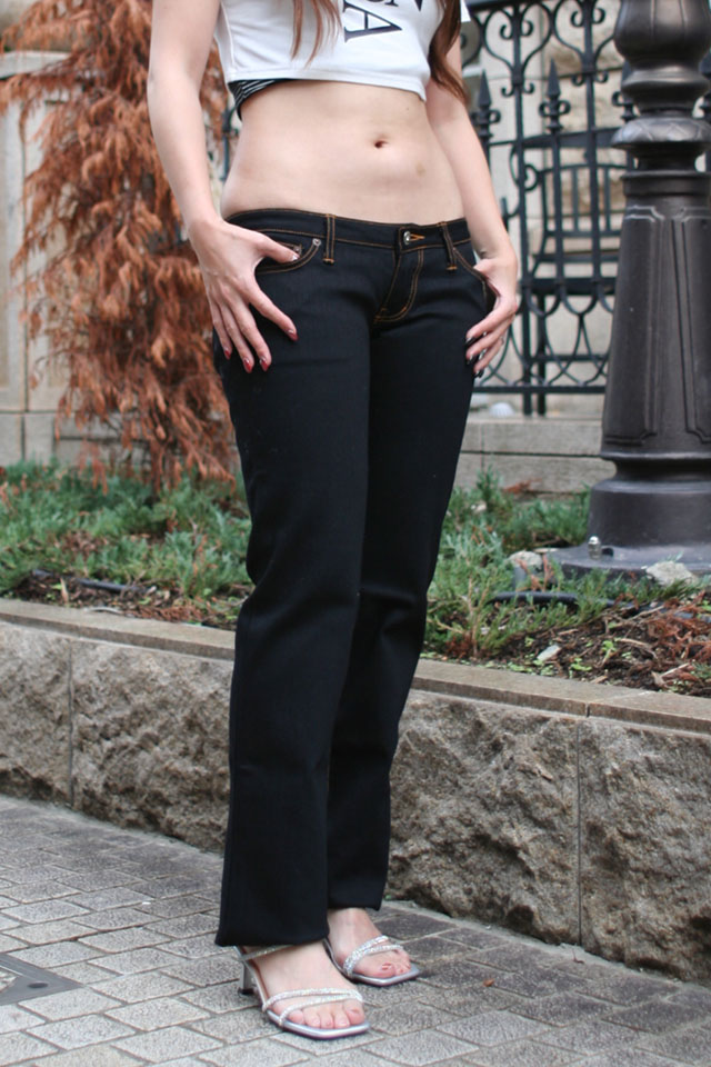 [商品説明][商品説明]当店オリジナル商品です股上13cm ジップフライ生地:11オンス ストレッチデニム(国産) 綿95%、ポリウレタン5%形状:タイトスリムボディー色:ブラック仕上げ:ワンウォッシュ(水洗い)ポケット:5ポケット(コインポケット有り)前股上のみならず、後股上の浅さにもこだわっています。サイズは下記サイズ表をご覧ください※プルダウンメニューでサイズが表示されるもの だけが在庫サイズとなります